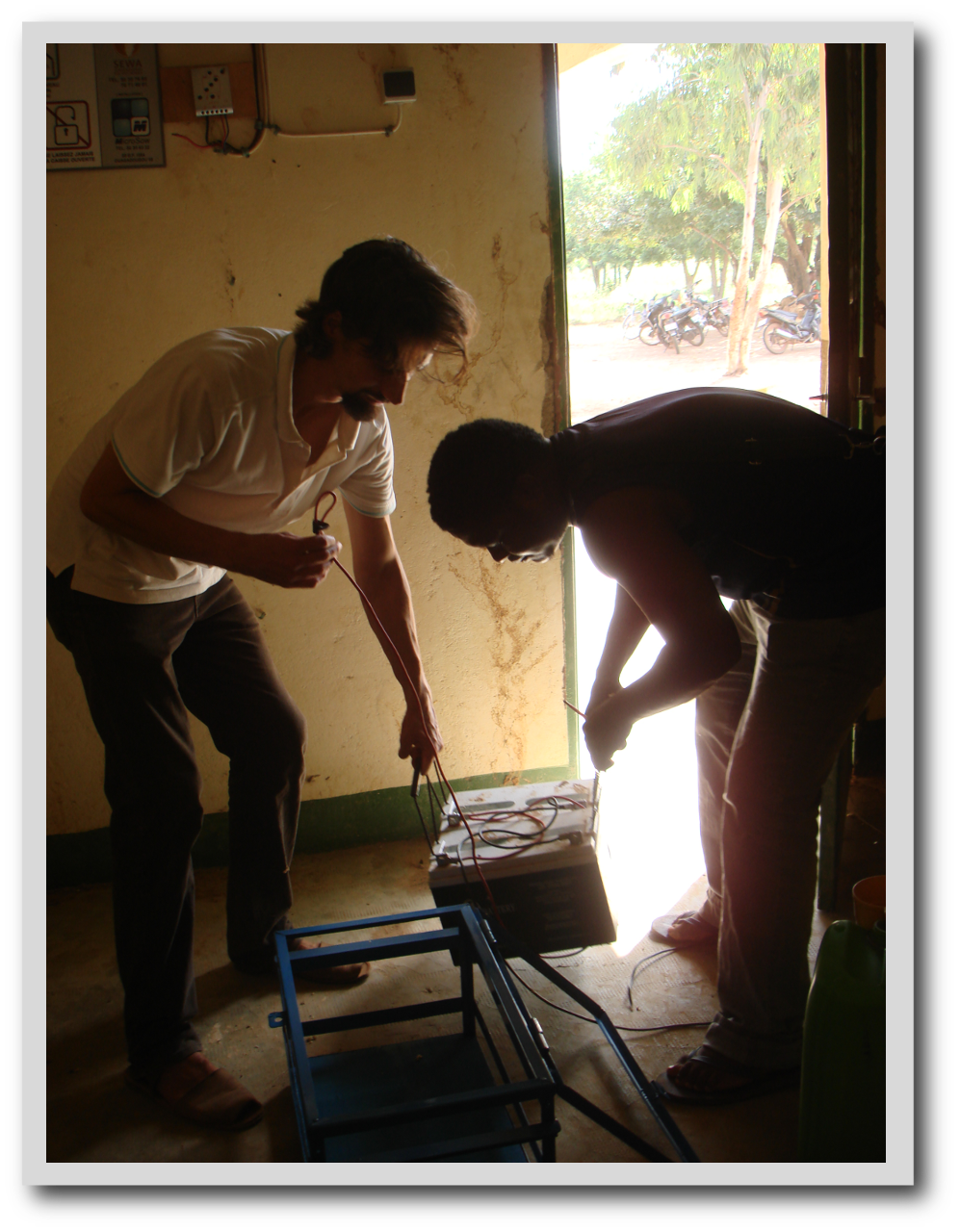 Und am 17.11.2014 stand dann eine Übergangsregierung fest und damit auch die Wiederaufnahme der Arbeiten für SEWA. In den darauf folgenden Wochen wurde die Krankenstation in Rakaye, sowie die Grundschulen von Gambo A und Issiri-Yaoghin mit unseren Anlagen ausgestattet. Eine spannende Zeit für uns, bei den ersten Solarinstallationen mit Hand anlegen zu können.